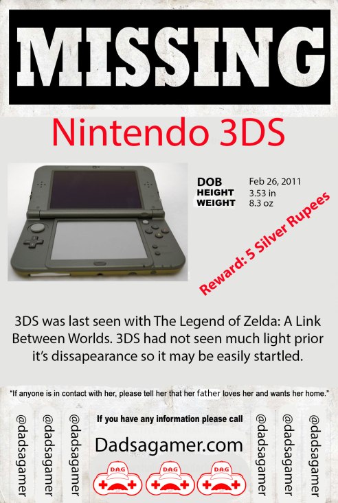 The point I’m trying to make is applicable outside of videogames. We all make mistakes, and shouldn’t expect perfection from anyone…especially kids. Am I upset my 3DS has gone missing indefinitely? Yes…but my niece’s intentions were not to make me angry. I was once that kid, so I’m putting myself in her Velcro light up shoes for a moment to gain some perspective, and I’m doing my best not to give her that much of a hard time.